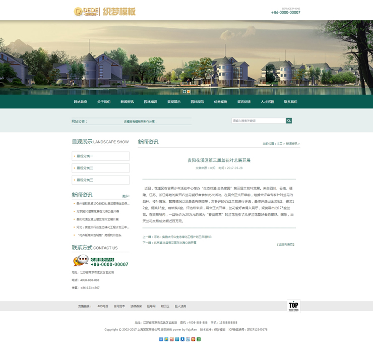 模板編號(hào):     B2132 農(nóng)林園林景觀類(lèi)網(wǎng)站織夢(mèng)模板園林建站藝術(shù)類(lèi)織