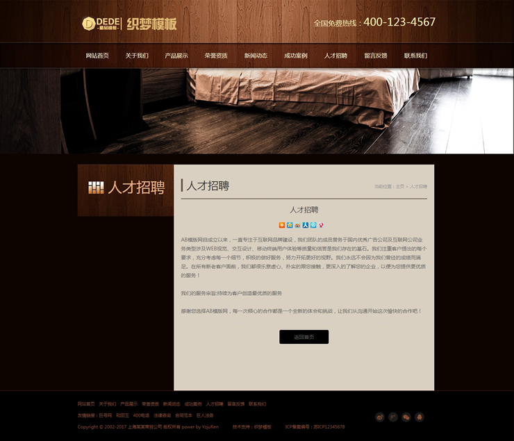 二、本模板可免費提供給廣大建站愛好者學習使用,但不提供任何形式的咨詢解答服務。為了尊重本公司的設計成果,請使用模板時添加本站網(wǎng)址為友情鏈接,否則本站將追究其版權使用的權限。