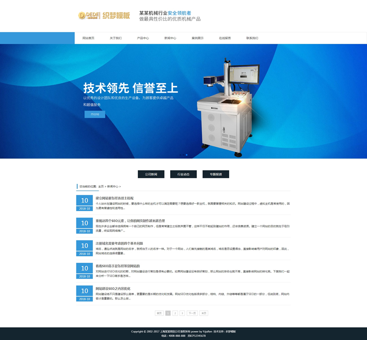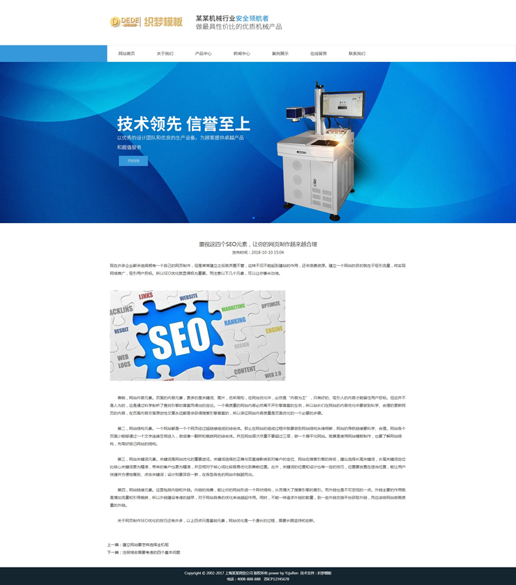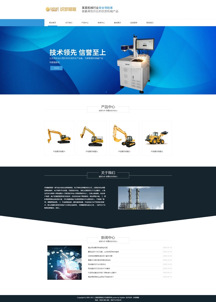 模板編號:     B2509 響應(yīng)式工業(yè)模具類織夢模板HTML5藍色機械工業(yè)設(shè)備