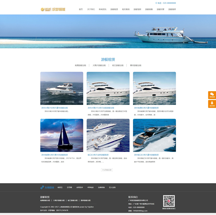 主頁(yè) > 網(wǎng)站建設(shè) > 網(wǎng)站模板 > 農(nóng)業(yè)、工業(yè)、五金、通用 > 響應(yīng)式游艇租賃類(lèi)網(wǎng)站織夢(mèng)模板HTML5船舶游艇輪船