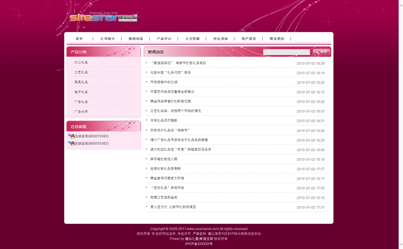 各種辦公禮品各式工藝品網(wǎng)站建站模板