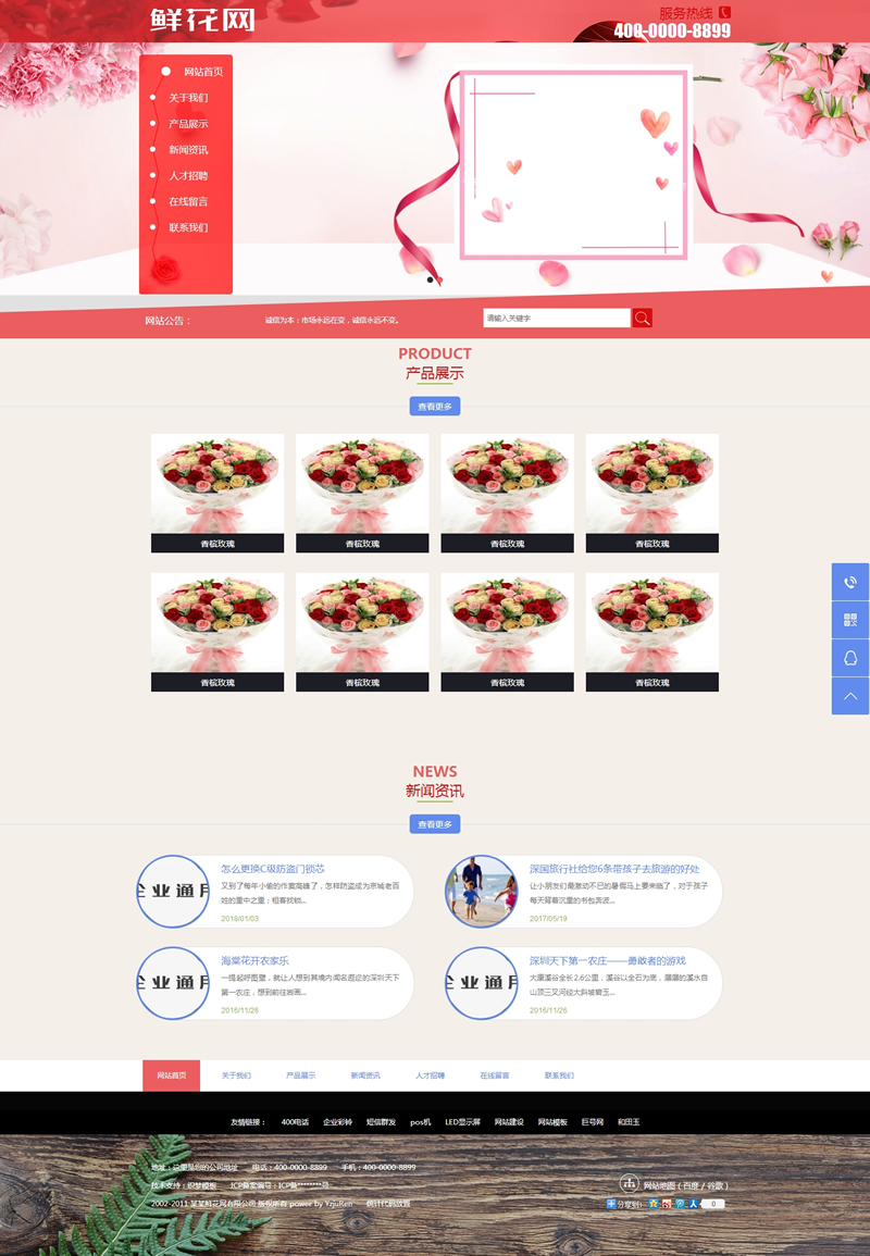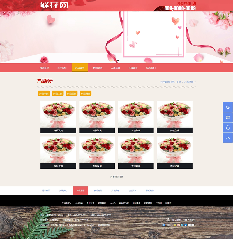 模板編號:     B1342 鮮花產(chǎn)品展示網(wǎng)站類織夢模板(帶手機端)