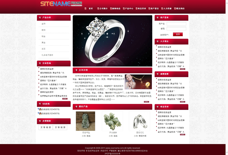 水晶黃金珠寶首飾各類銀飾品建站模板