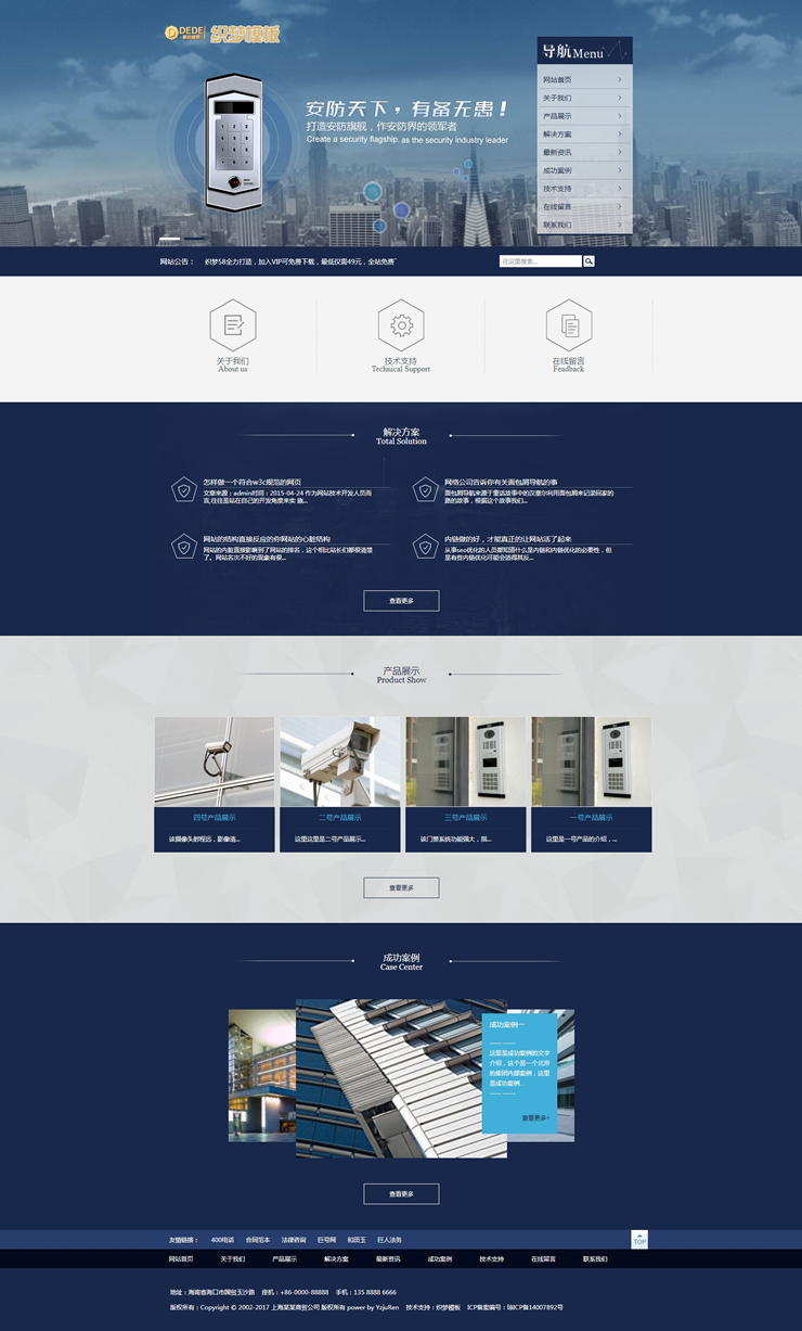 模板編號:     B1666 藍色大氣安防設備企業(yè)通用網(wǎng)站織夢源碼