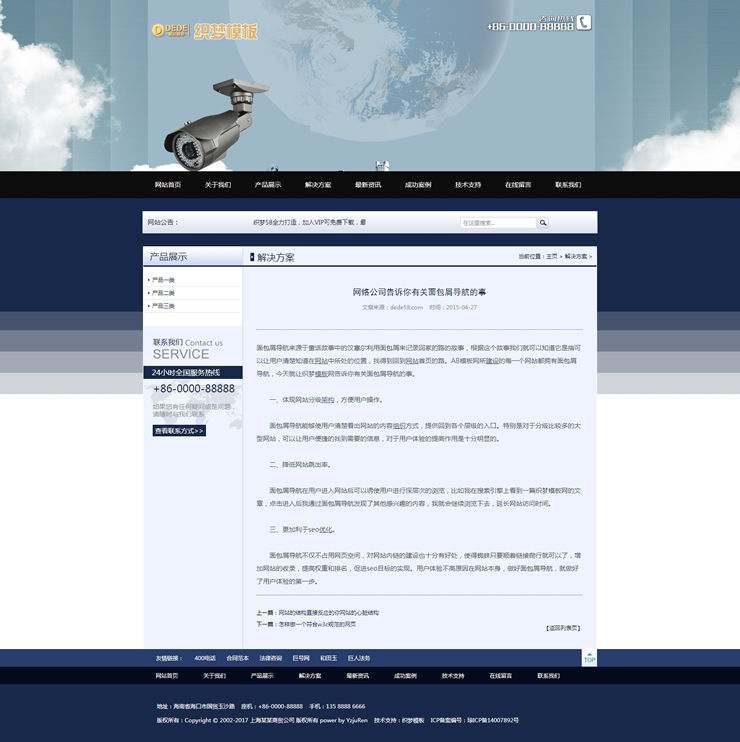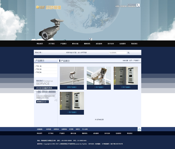 藍色大氣安防設備企業(yè)通用網(wǎng)站織夢源碼