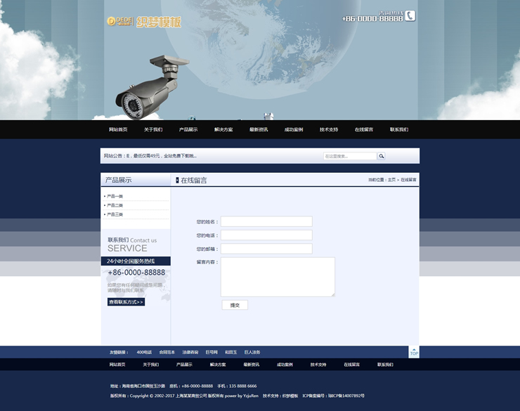主頁 > 網(wǎng)站建設 > 網(wǎng)站模板 > 網(wǎng)絡、設計、禮品、飾品 > 藍色大氣安防設備企業(yè)通用網(wǎng)站織夢源碼