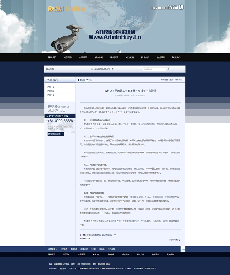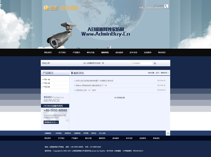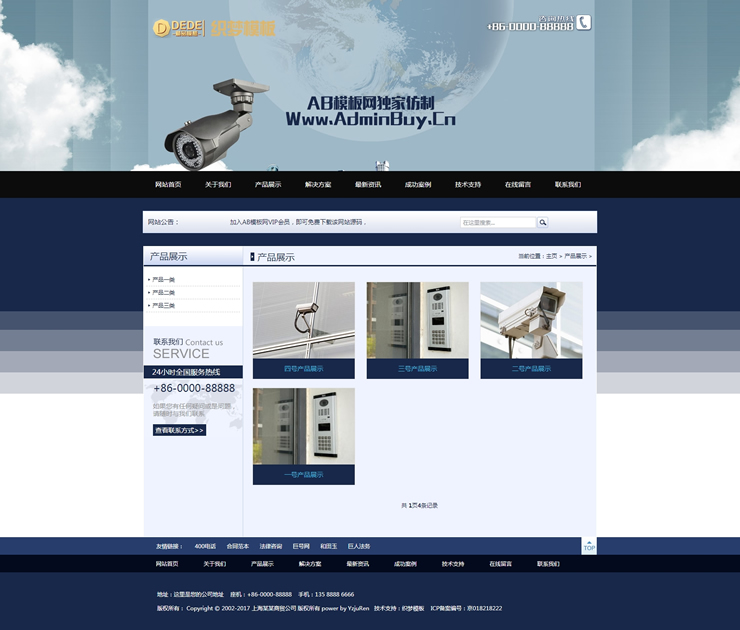 模板編號:     B1905 安防設(shè)備網(wǎng)站源碼織夢藍色html大氣通用行企業(yè)網(wǎng)