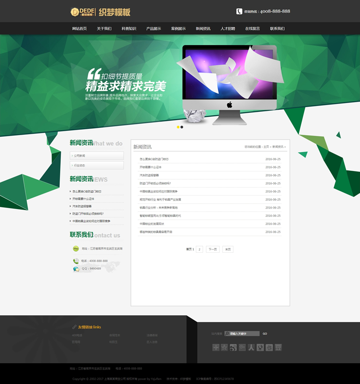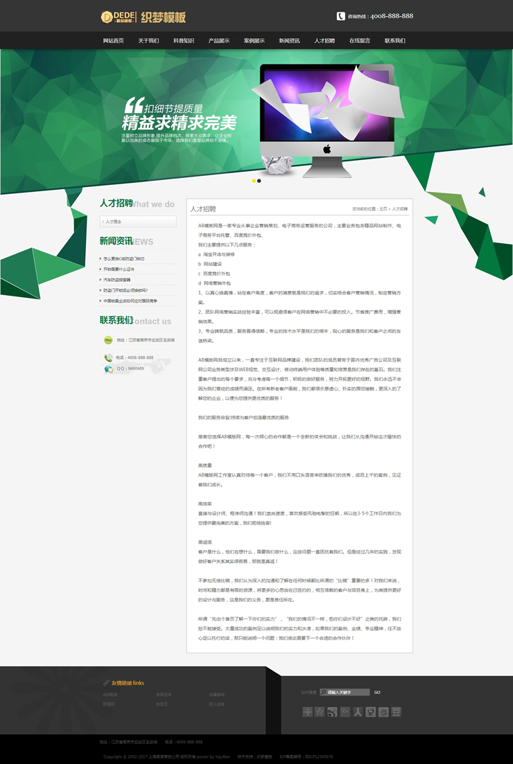 廣告?zhèn)髅叫袠I(yè)網(wǎng)站源碼 綠色通用企業(yè)類織夢模板