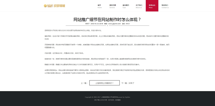 四、注意各個(gè)細(xì)節(jié)的處理,標(biāo)題文字多余隱藏“…”代替,圖片ALT調(diào)用標(biāo)題等,整站代碼兼顧SEO優(yōu)化,代碼工整、非常有利于搜索引擎的蜘蛛抓取及收錄,確保網(wǎng)站的優(yōu)化推廣更加簡(jiǎn)單快捷。