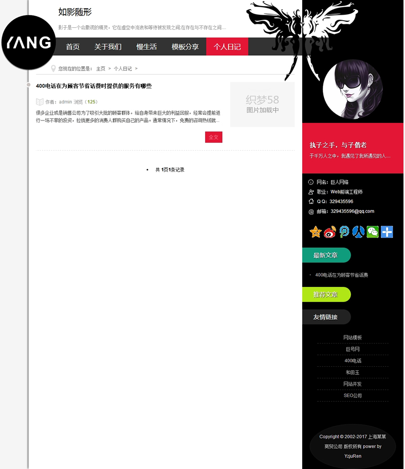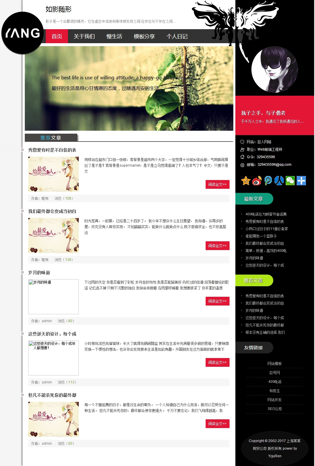主頁 > 網(wǎng)站建設(shè) > 網(wǎng)站模板 > 資訊、博客、展銷、其它 > 自適應(yīng)個性的個人博客整站織夢模板程序(響應(yīng)式