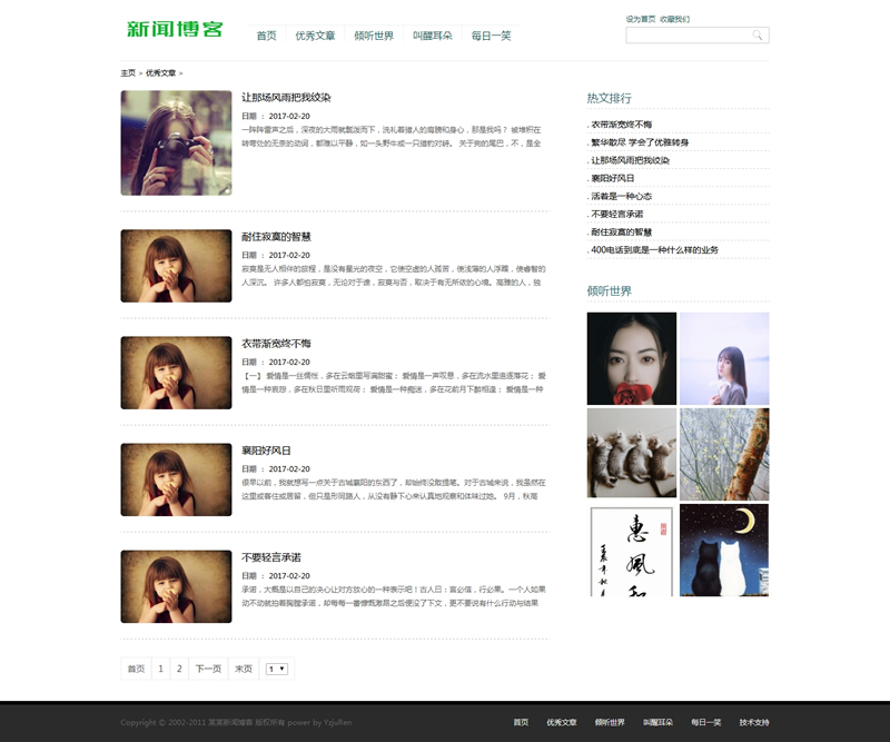 小清新優(yōu)秀文章新聞博客類織夢模板(帶手機端