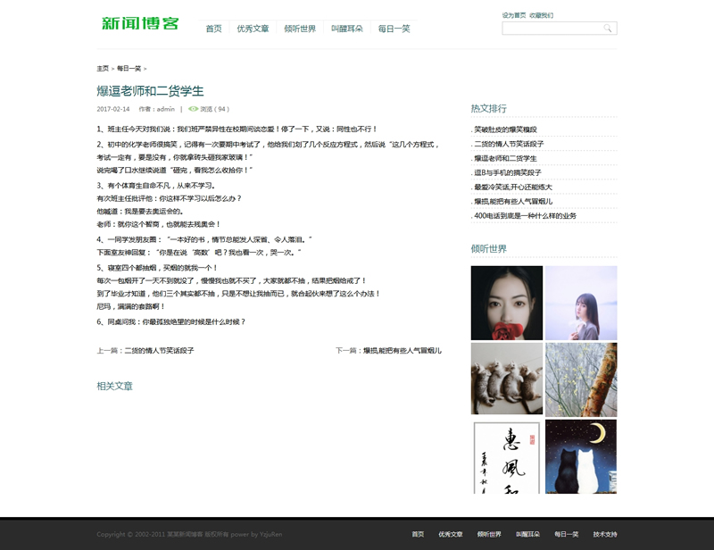 模板編號:     B1313 小清新優(yōu)秀文章新聞博客類織夢模板(帶手機端