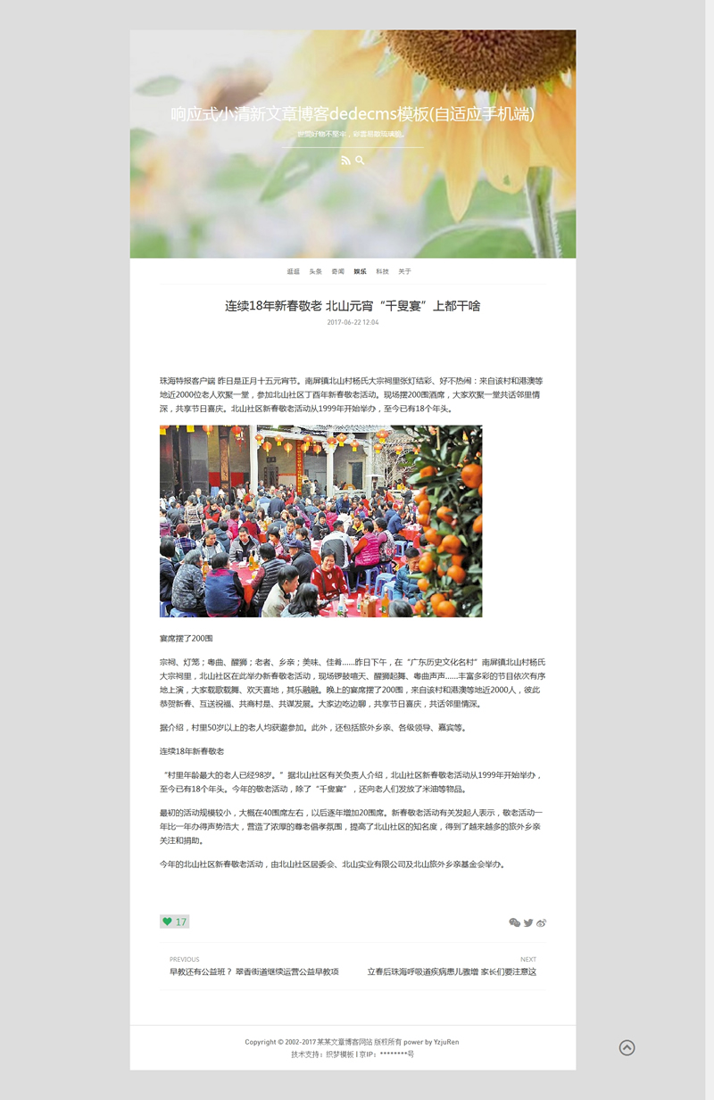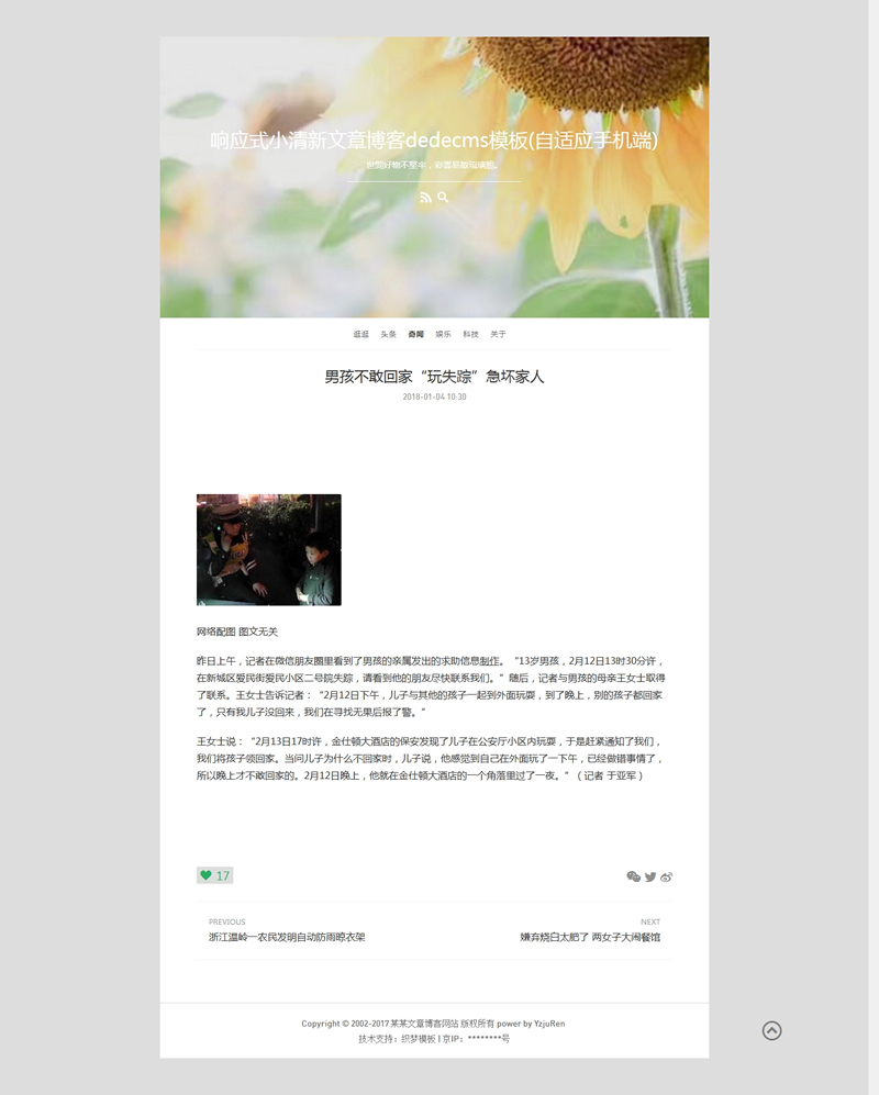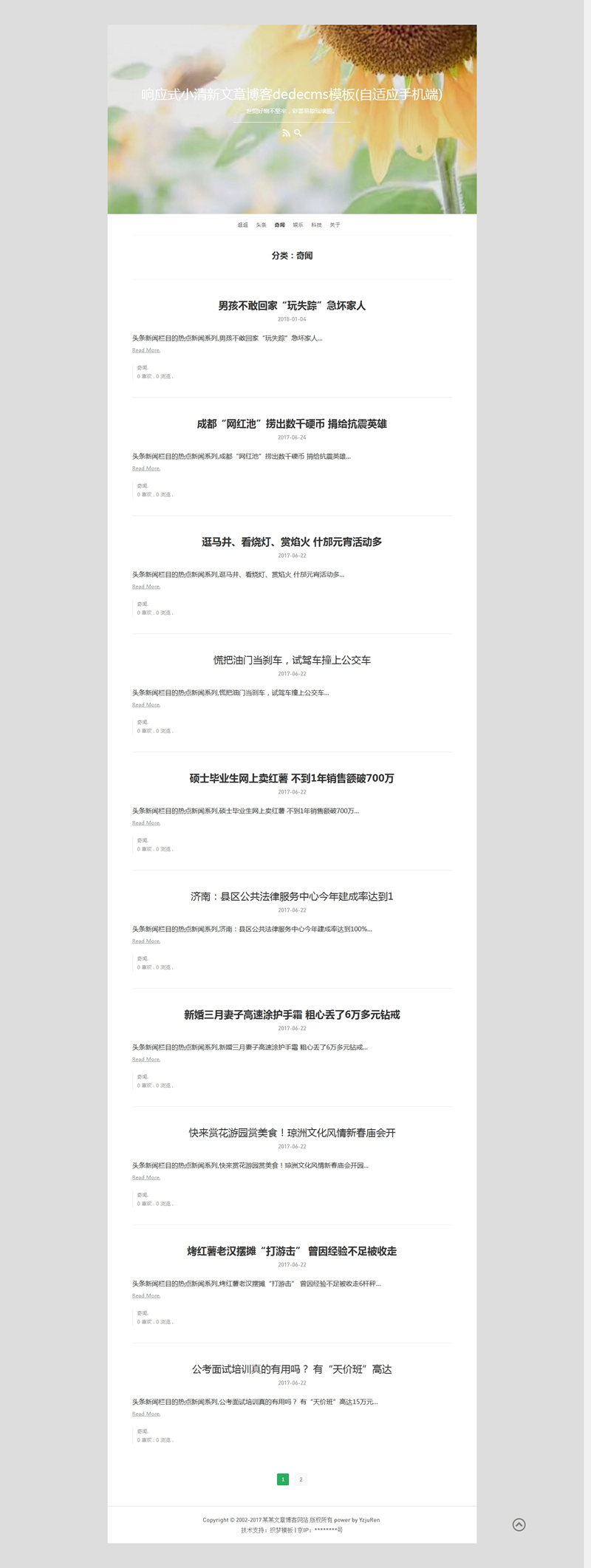 響應(yīng)式小清新文章博客織夢dedecms模板(自適應(yīng)手機(jī)