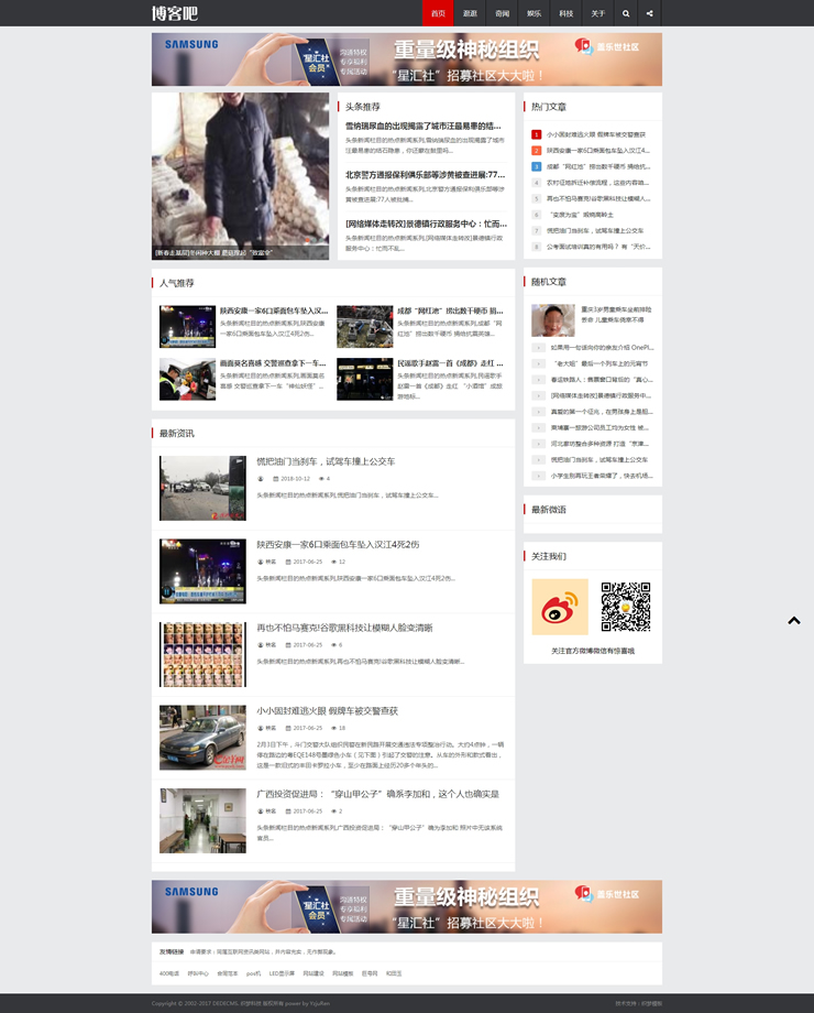 模板編號:     B1519 織夢自適應(yīng)cms文章資訊博客模板