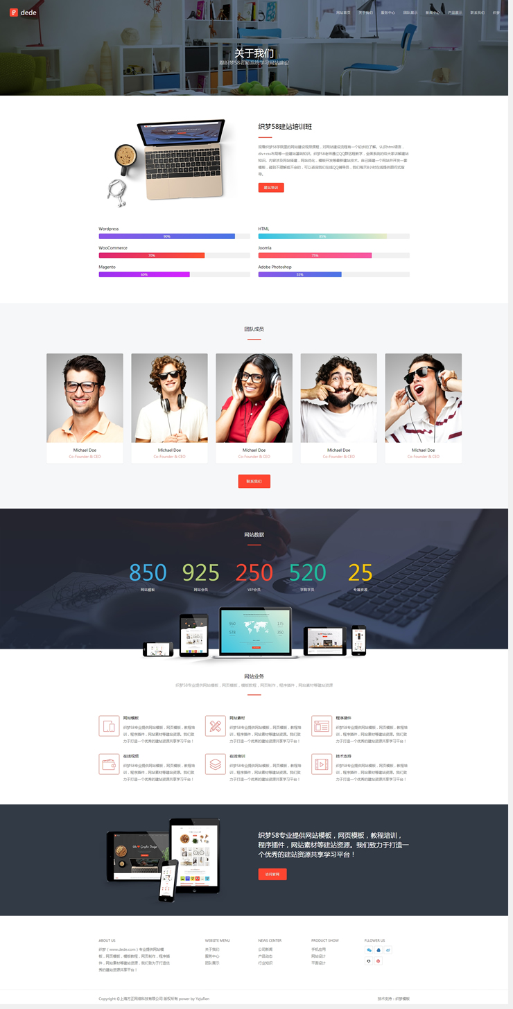 模板編號:     B1588 響應式高端精美企業(yè)工作室織夢模板(自適應移動