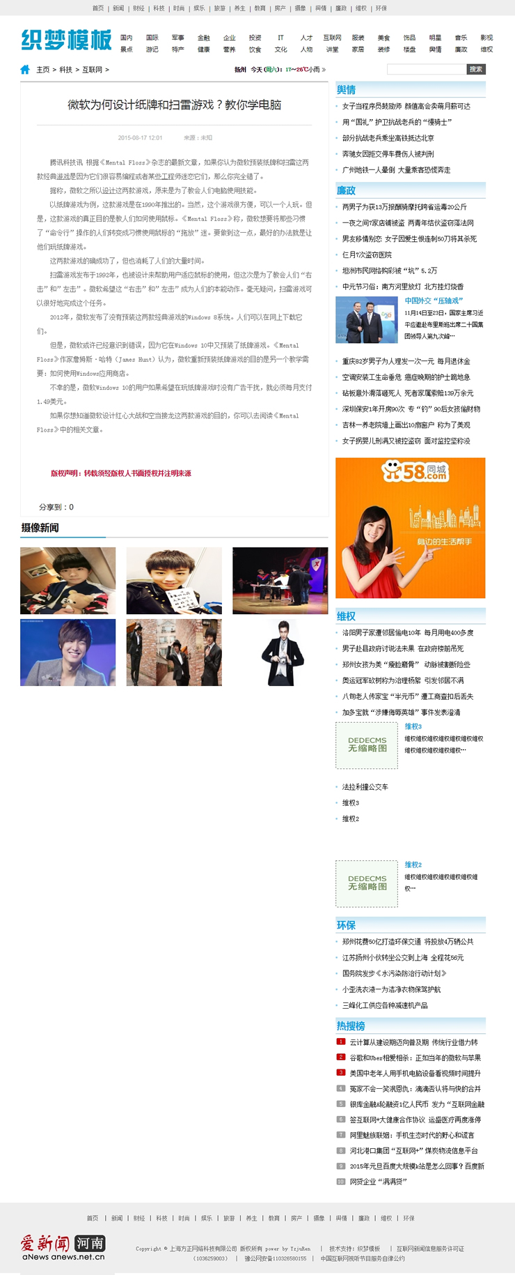 主頁 > 網(wǎng)站建設(shè) > 網(wǎng)站模板 > 資訊、博客、展銷、其它 > 最新升級仿愛新聞文章門戶織夢模板
