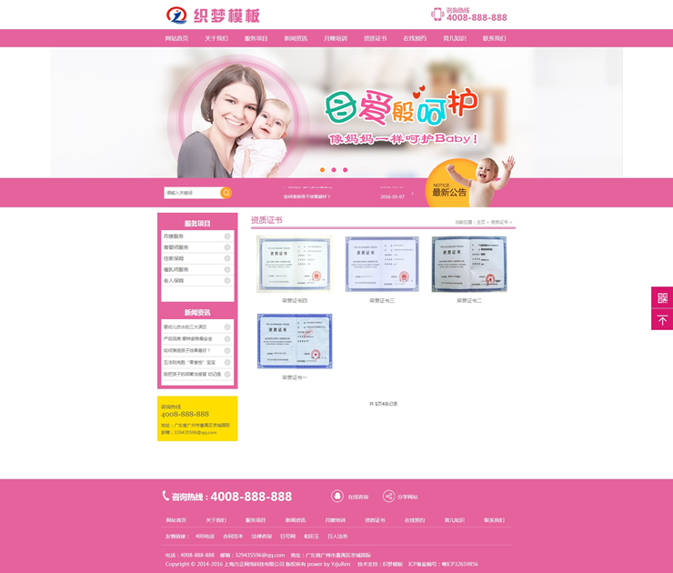保姆服務(wù)育嬰家政類網(wǎng)站織夢源碼