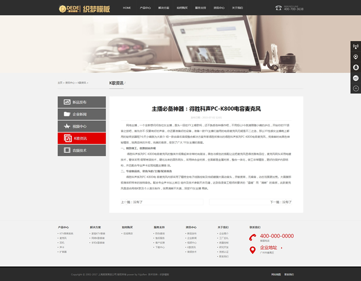 模板編號:     B1747 娛樂多媒體類企業(yè)公司織夢模板