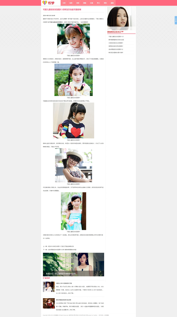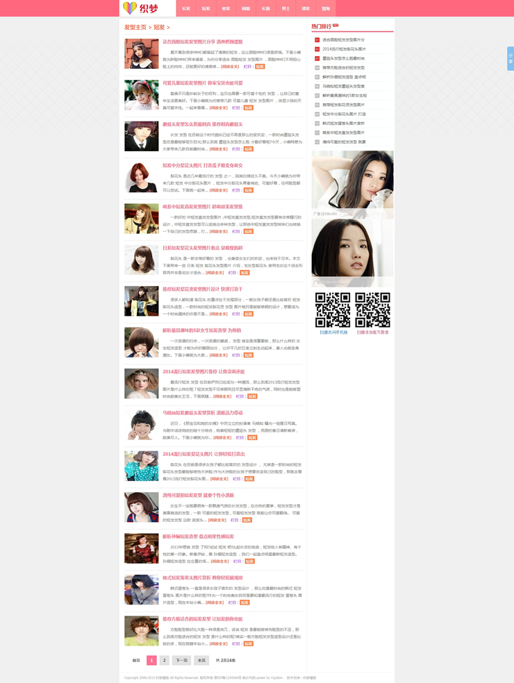 粉紅色清爽發(fā)型美容美發(fā)類網(wǎng)站dedecms模板