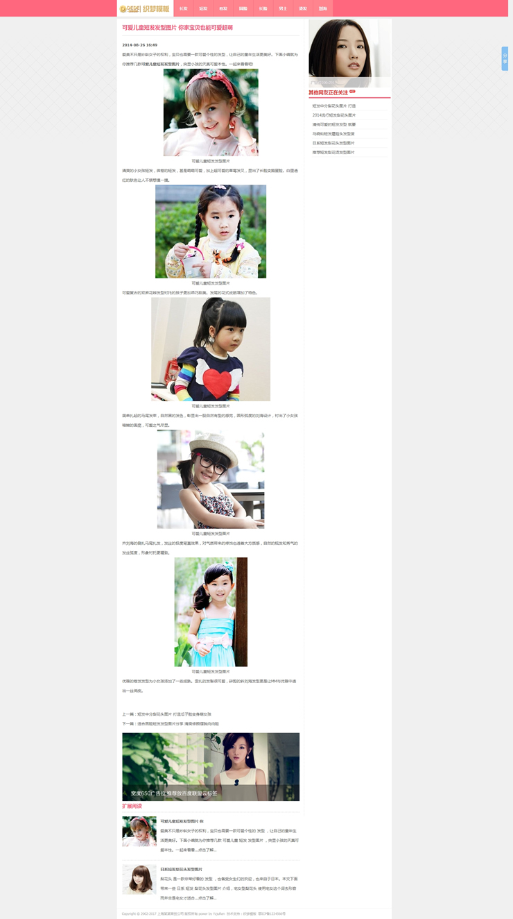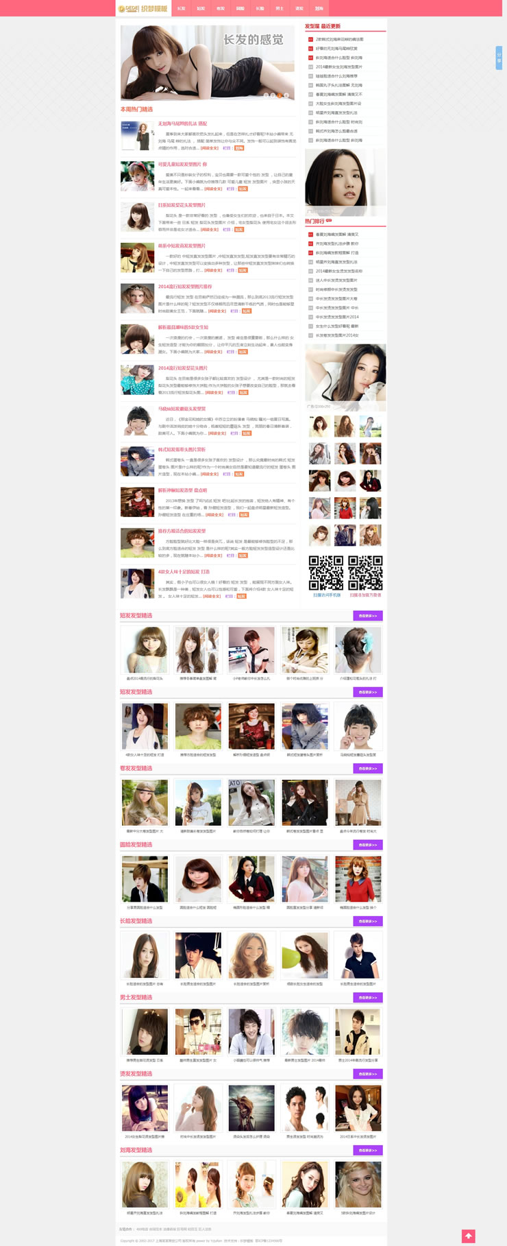 粉紅色清爽發(fā)型美女圖片dede模板整站