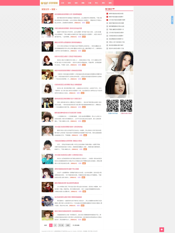 主頁 > 網(wǎng)站建設 > 網(wǎng)站模板 > 資訊、博客、展銷、其它 > 粉紅色清爽發(fā)型美女圖片dede模板整站