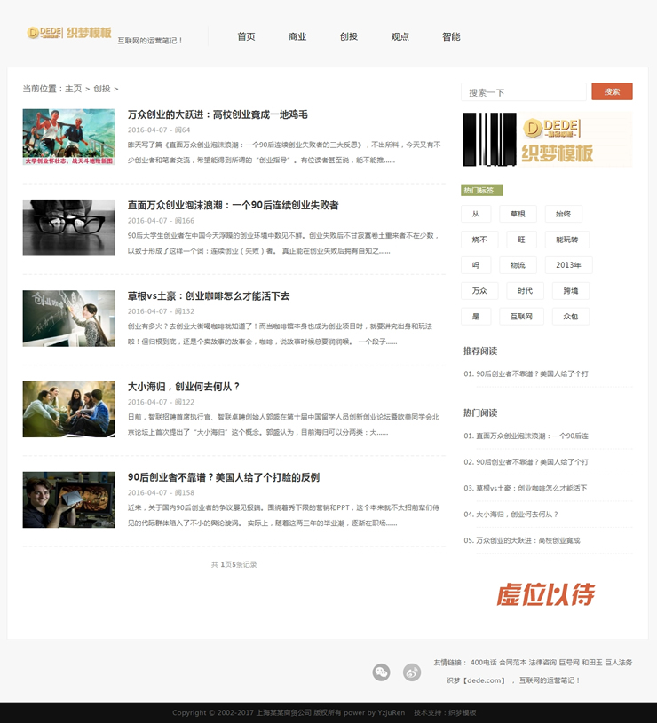 主頁 > 網(wǎng)站建設(shè) > 網(wǎng)站模板 > 資訊、博客、展銷、其它 > HTML5響應(yīng)式清新博客文章織夢(mèng)模板