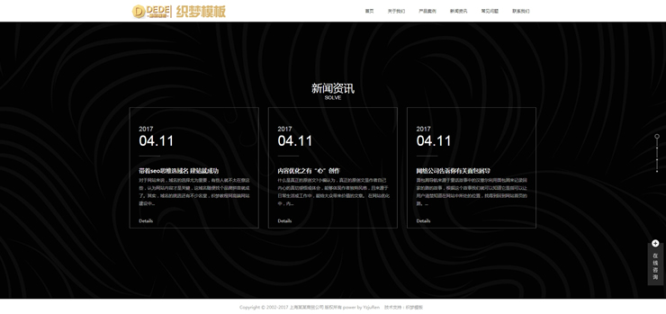 主頁 > 網(wǎng)站建設(shè) > 網(wǎng)站模板 > 資訊、博客、展銷、其它 > 高端創(chuàng)意產(chǎn)品展示織夢網(wǎng)站源碼H5全屏滾動智能電