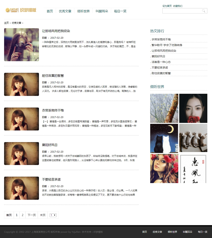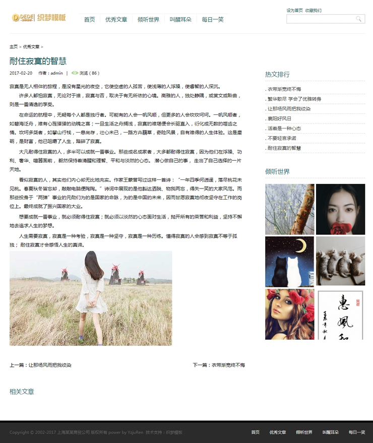 模板編號(hào):     B2278 小清新優(yōu)秀文章新聞織夢(mèng)博客類網(wǎng)站源碼個(gè)人博
