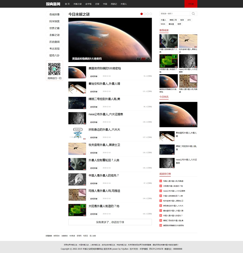 未解之謎新聞網(wǎng)類網(wǎng)站織夢模板奇聞異事網(wǎng)站源碼下載