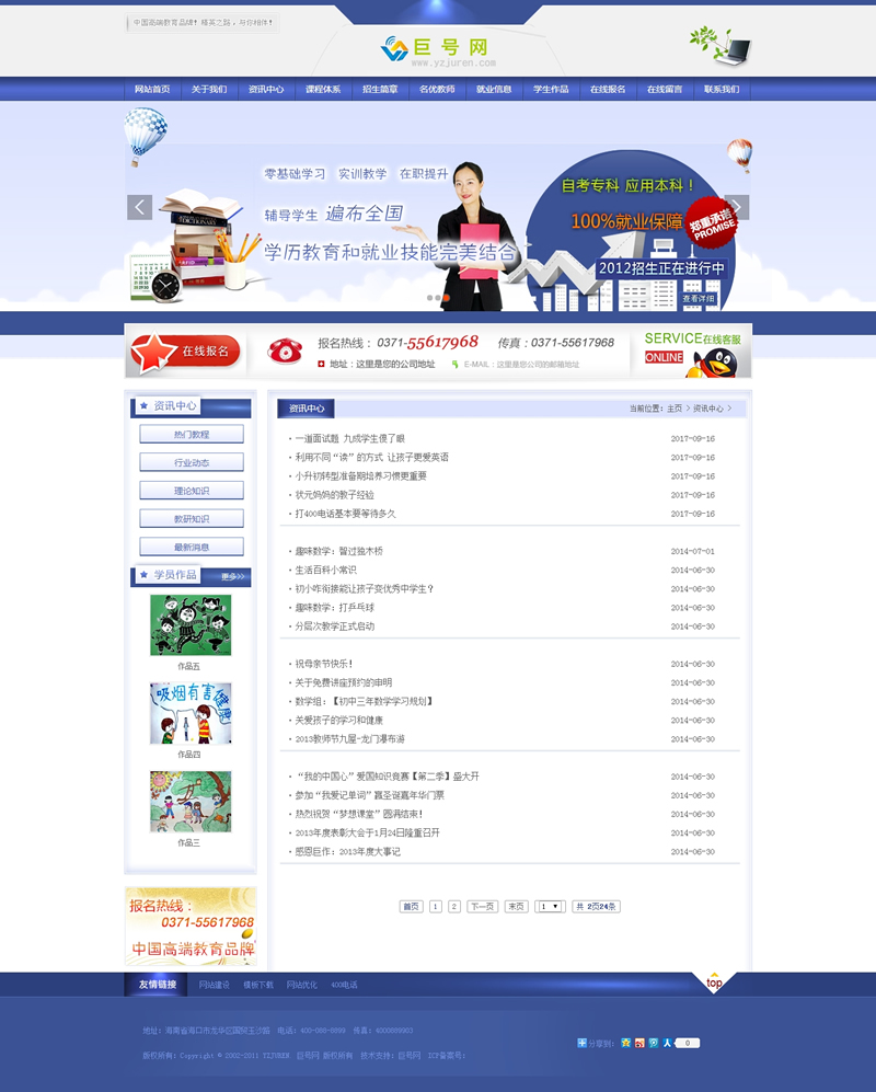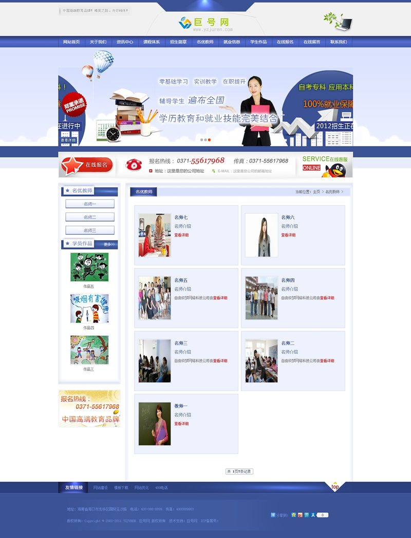 模板編號:     B1009 藍(lán)色大氣??票究茖W(xué)校教育培訓(xùn)類企業(yè)網(wǎng)站織夢
