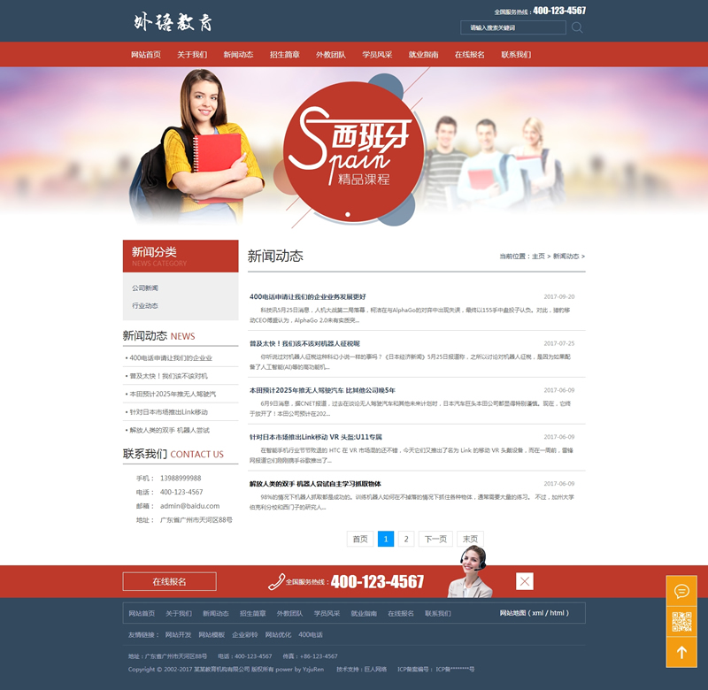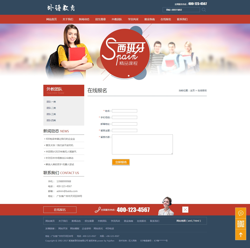 主頁 > 網(wǎng)站建設(shè) > 網(wǎng)站模板 > 學(xué)校、培訓(xùn)、古典、政法 > 外語教育精品課程類網(wǎng)站織夢(mèng)dedecms模板(帶手機(jī)端
