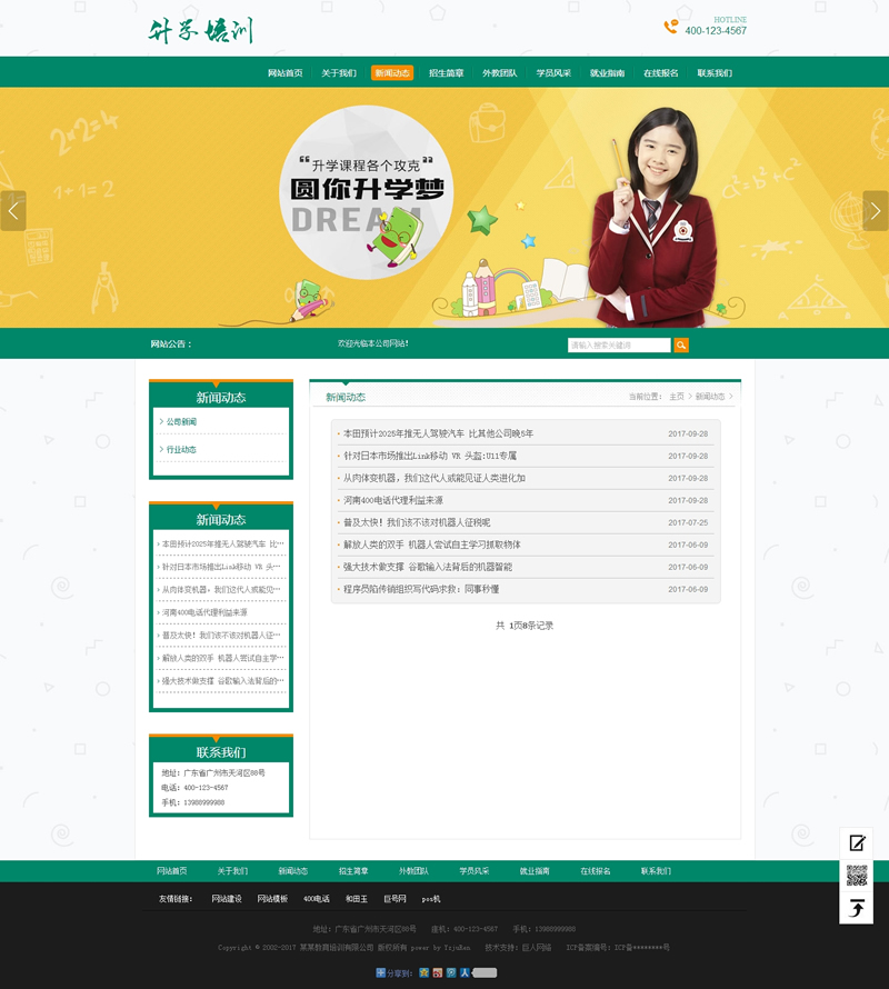 中小學(xué)升學(xué)課程培訓(xùn)類網(wǎng)站織夢(mèng)模板(帶手機(jī)端