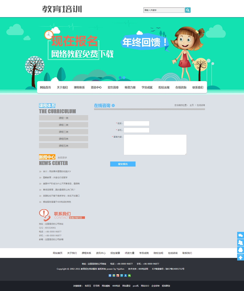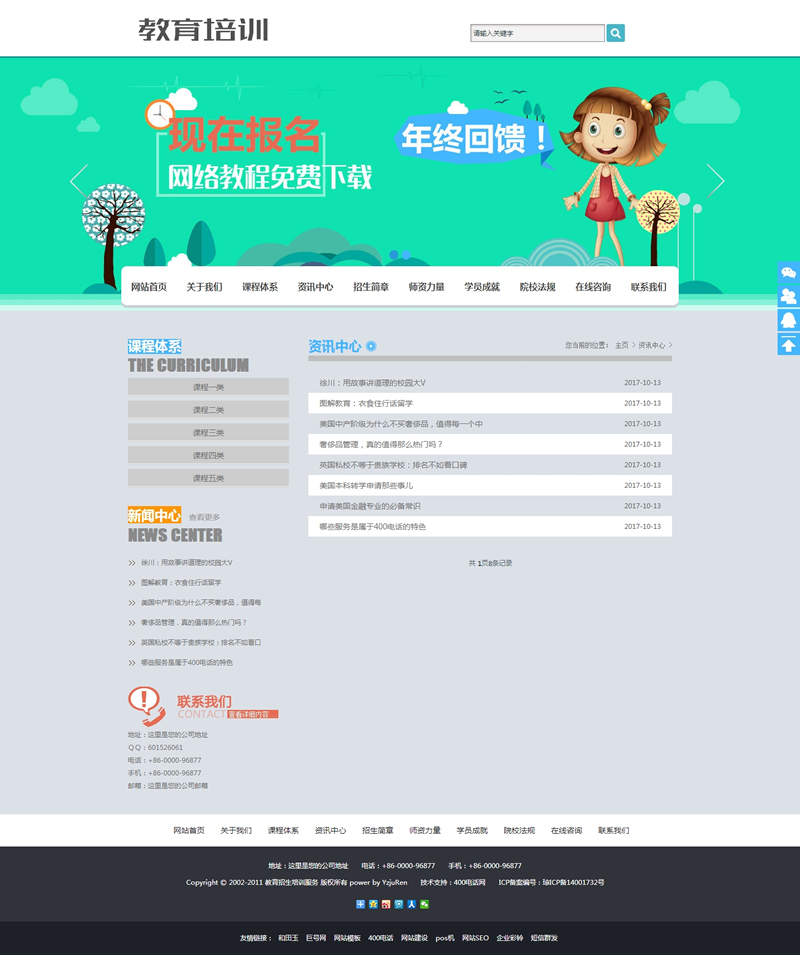 主頁 > 網(wǎng)站建設 > 網(wǎng)站模板 > 學校、培訓、古典、政法 > 教育招生培訓服務類織夢模板(帶手機端)