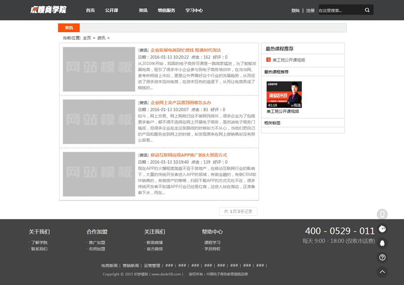模板編號:     B1461 dedecms仿虎嗅商在線視頻教育門戶網(wǎng)站織夢模板