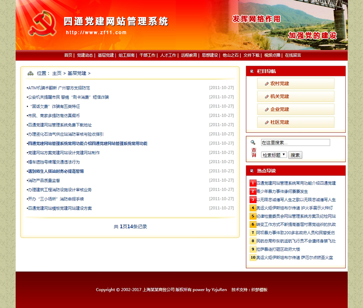 主頁 > 網(wǎng)站建設(shè) > 網(wǎng)站模板 > 學(xué)校、培訓(xùn)、古典、政法 > 紅色風(fēng)格政府部門網(wǎng)站織夢(mèng)模板