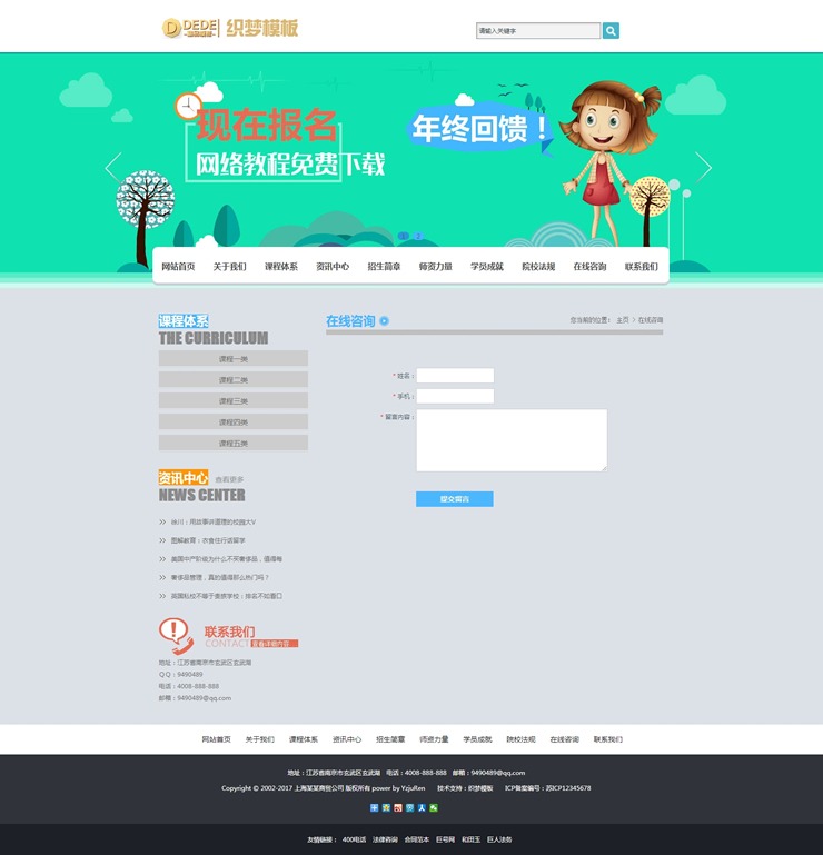 主頁 > 網(wǎng)站建設 > 網(wǎng)站模板 > 學校、培訓、古典、政法 > 教育招生類院校網(wǎng)站源碼教育培訓服務類織夢模