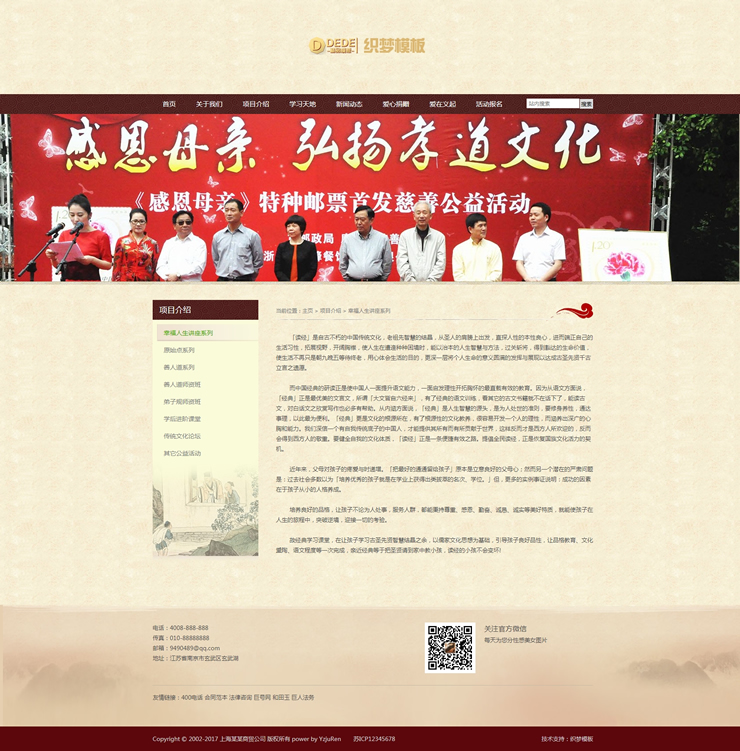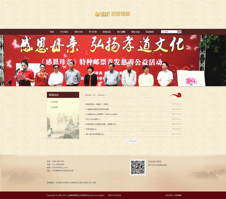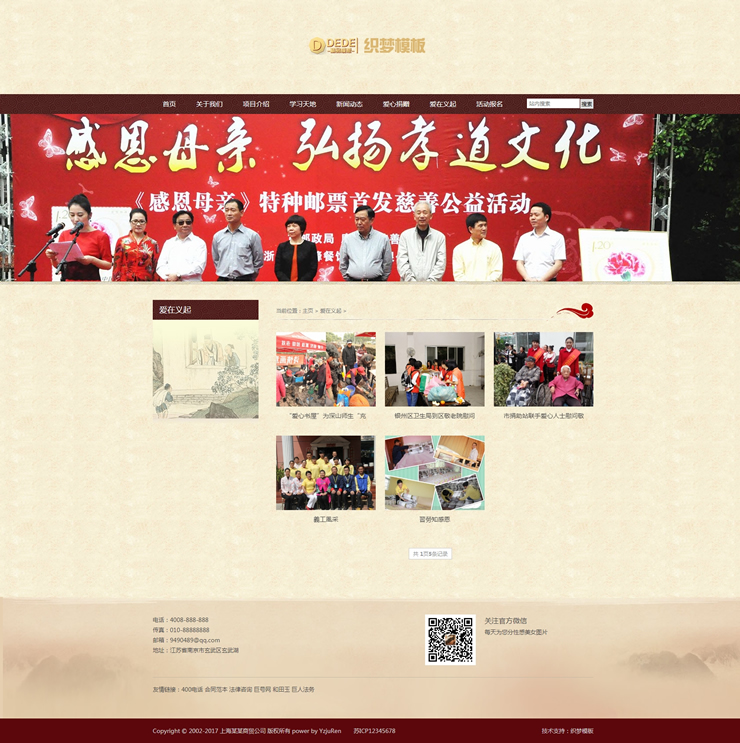 慈善公益網(wǎng)站源碼公益基金文化孝道織夢模板