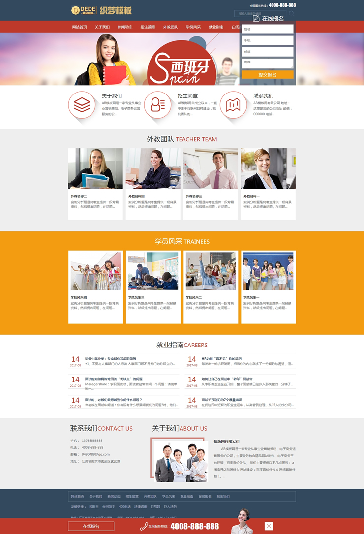 主頁(yè) > 網(wǎng)站建設(shè) > 網(wǎng)站模板 > 學(xué)校、培訓(xùn)、古典、政法 > 外語(yǔ)教育精品課程類網(wǎng)站織夢(mèng)dedecms模板外教英語(yǔ)