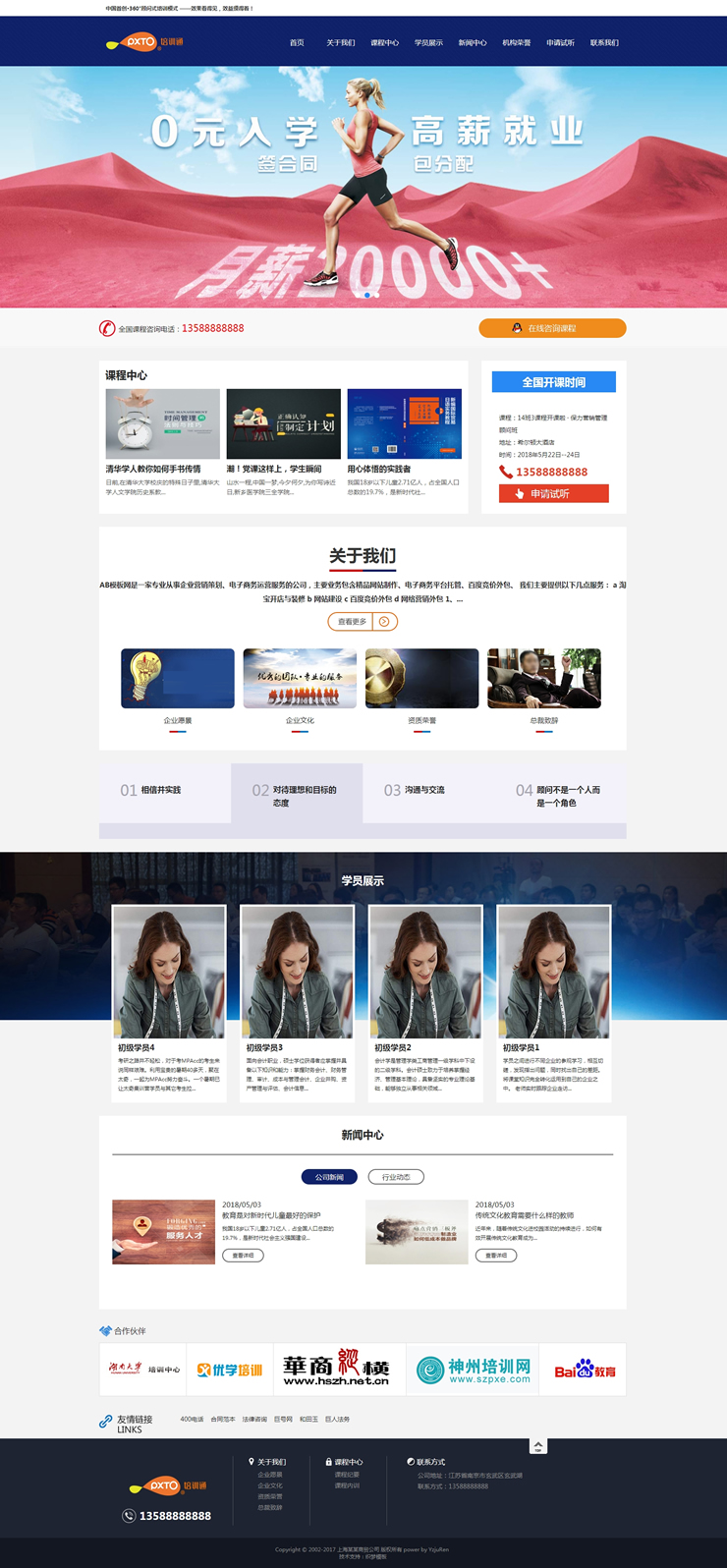 模板編號:     B2364 營銷管理商學(xué)院培訓(xùn)類網(wǎng)站織夢模板藍色培訓(xùn)機