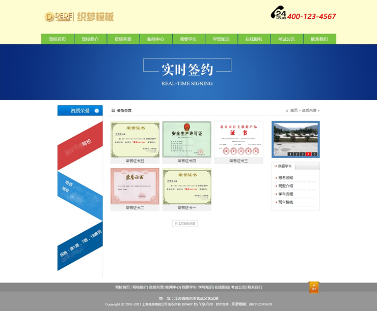 模板編號:     B2381 機動車駕駛培訓(xùn)學(xué)校駕校類網(wǎng)站織夢模板駕校學(xué)