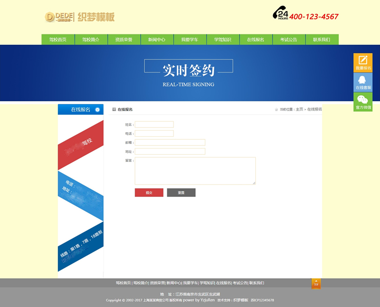 主頁 > 網(wǎng)站建設(shè) > 網(wǎng)站模板 > 學(xué)校、培訓(xùn)、古典、政法 > 機動車駕駛培訓(xùn)學(xué)校駕校類網(wǎng)站織夢模板駕校學(xué)