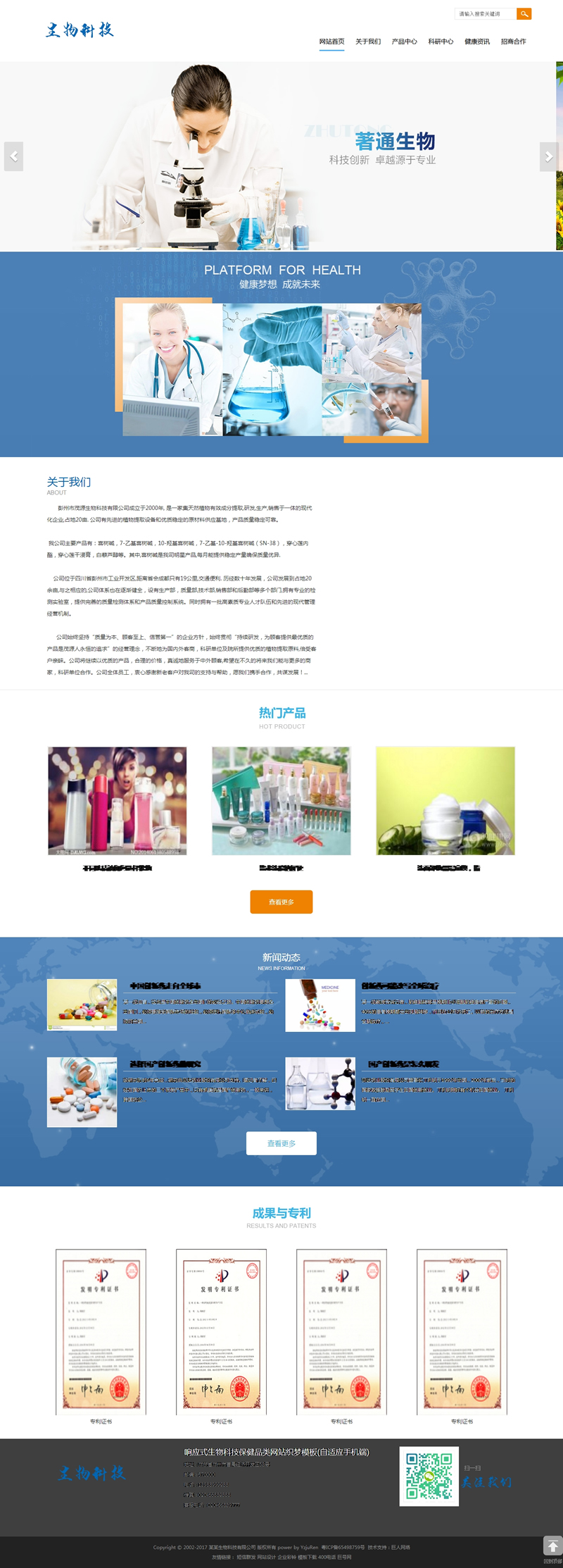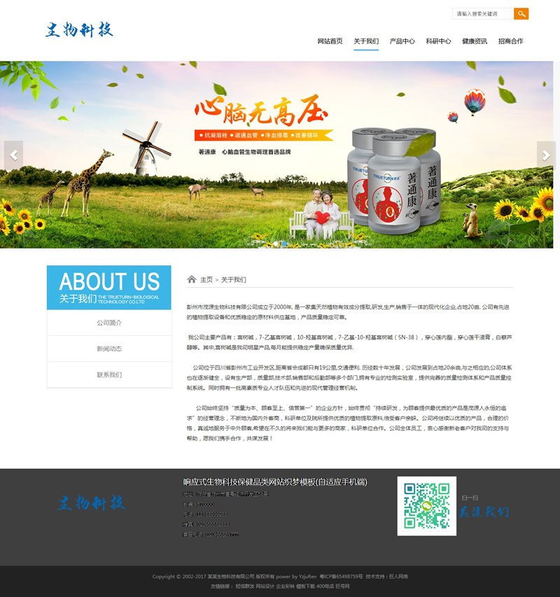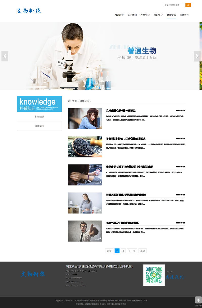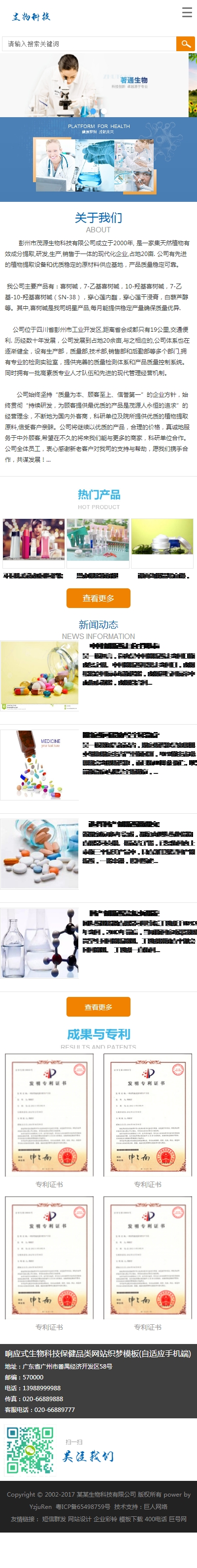 響應(yīng)式生物科技保健品類網(wǎng)站模板(自適應(yīng)手機(jī)端