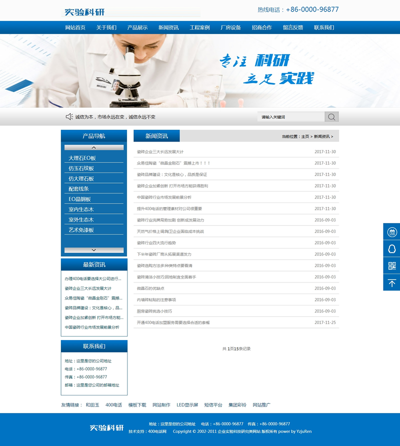 主頁(yè) > 網(wǎng)站建設(shè) > 網(wǎng)站模板 > 醫(yī)疔、保健、美容、娛樂 > 企業(yè)實(shí)驗(yàn)科技研究類網(wǎng)站織夢(mèng)模板(帶手機(jī)移動(dòng)端