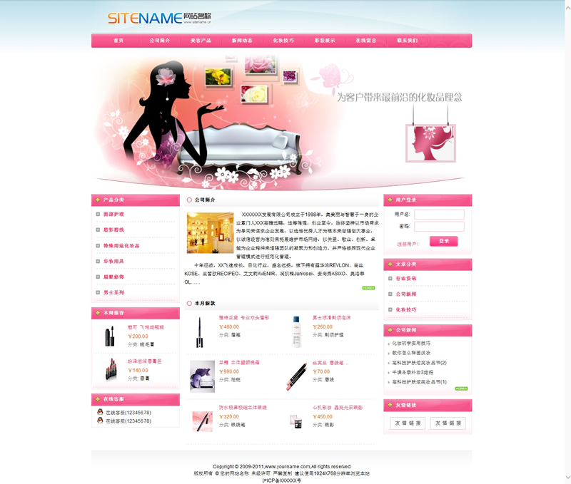 模板編號:     S1102 美容化妝用品商鋪網(wǎng)站建站模板