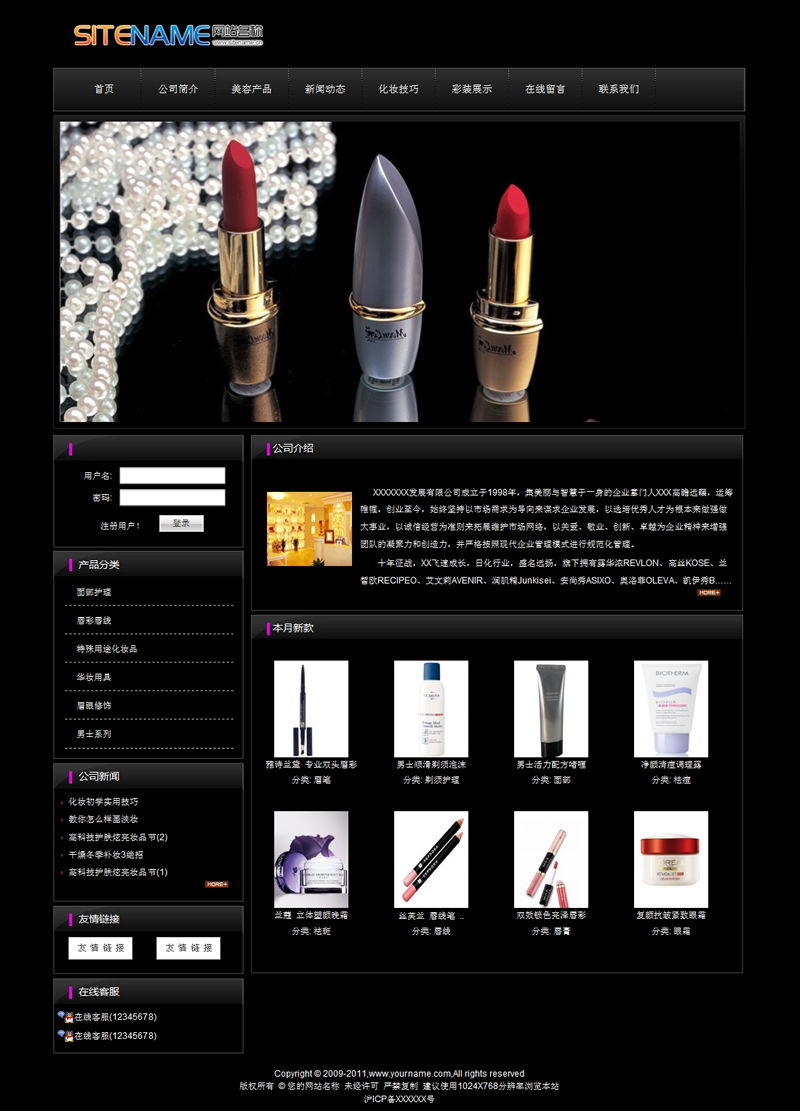 模板編號(hào):     S1106 黑色化妝品系列產(chǎn)品網(wǎng)站建站模板