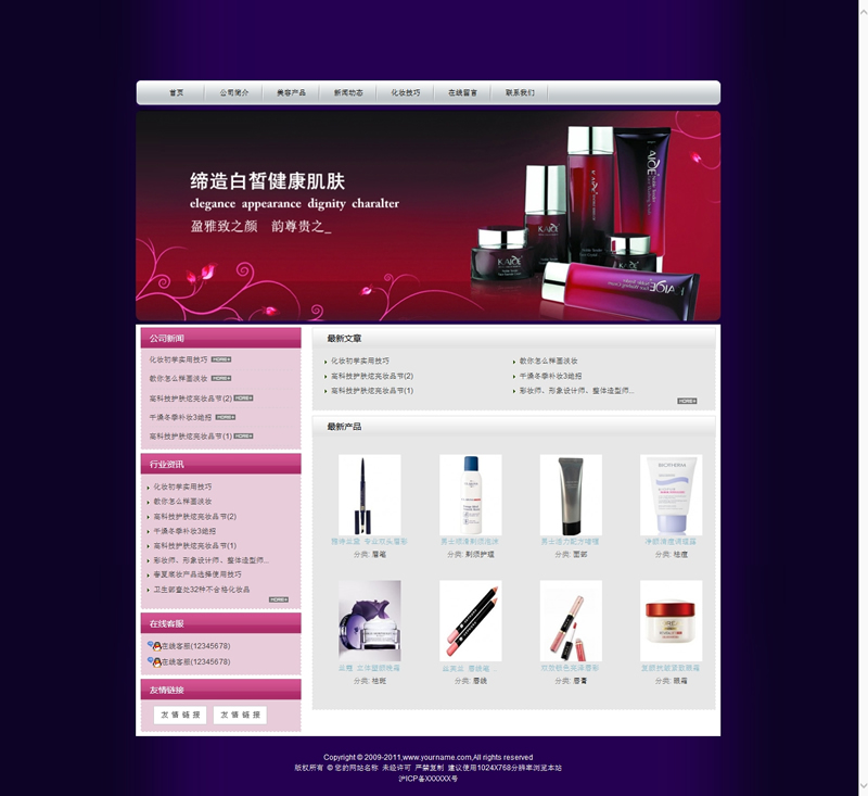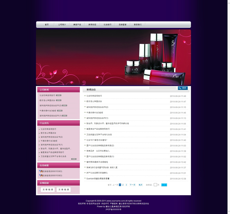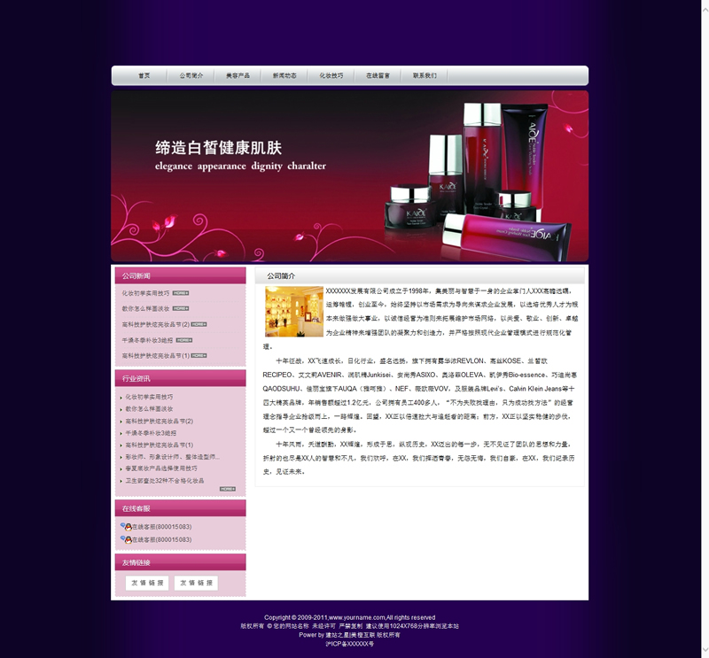 模板編號(hào):     S1182 紫色多彩化妝用品美容護(hù)膚品建站公司模板