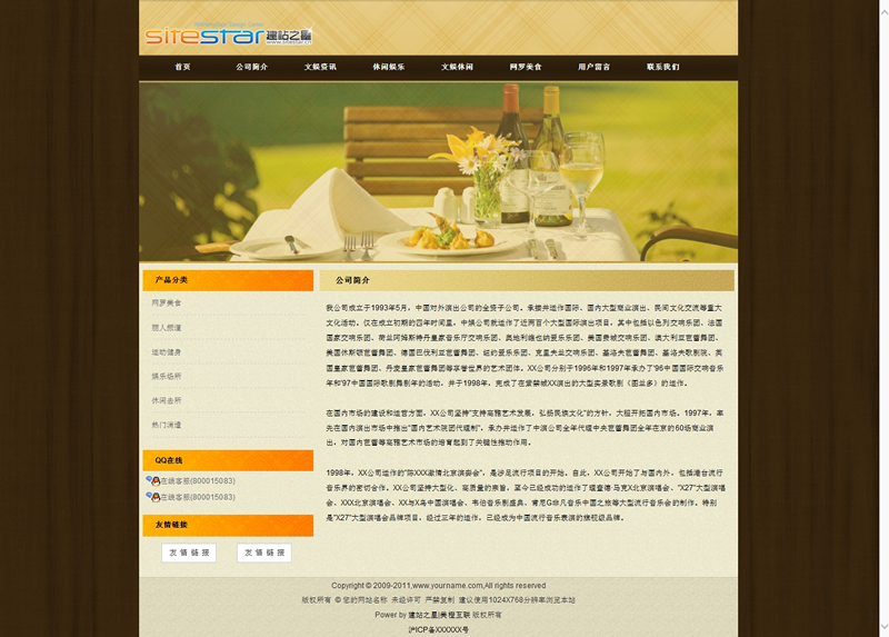 主頁(yè) > 網(wǎng)站建設(shè) > 網(wǎng)站模板 > 醫(yī)疔、保健、美容、娛樂(lè) > 美食文化餐飲公司休閑場(chǎng)所企業(yè)建站模板