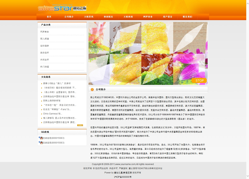 模板編號:     S1477 文化娛樂項目各類文化發(fā)展公司建站模板