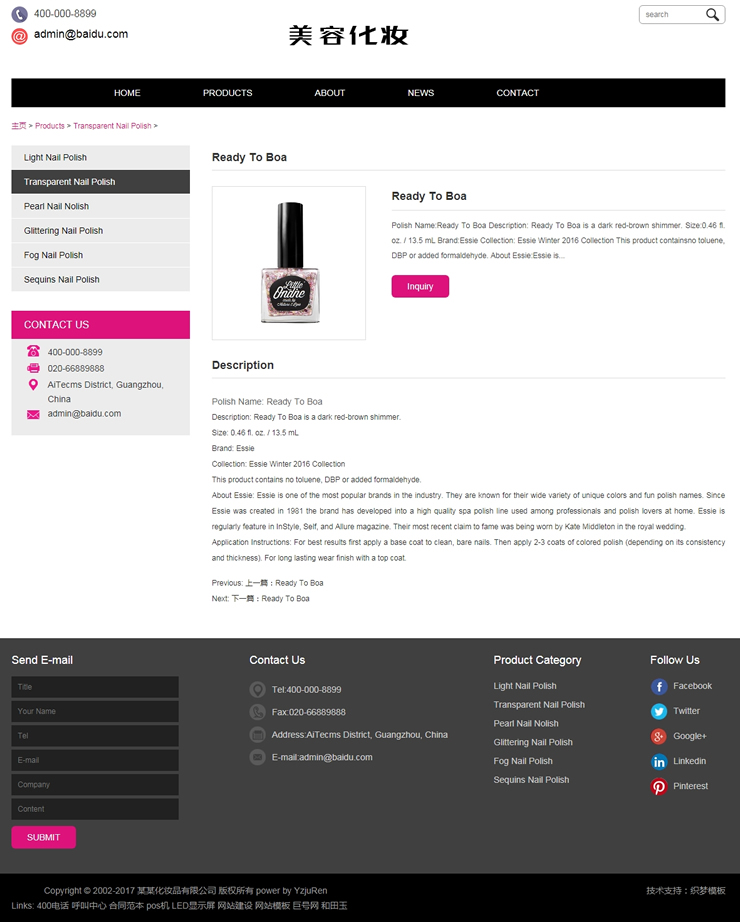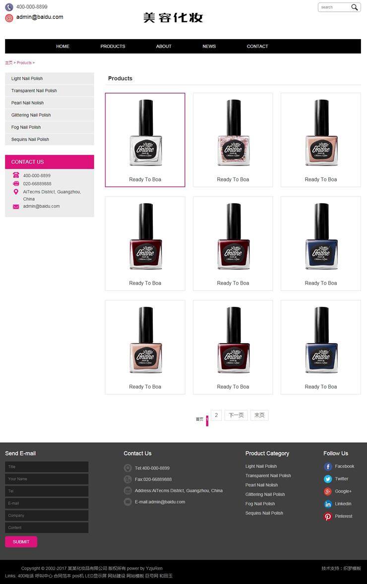 主頁 > 網站建設 > 網站模板 > 醫(yī)疔、保健、美容、娛樂 > 響應式外貿化妝美容產品網站織夢模板(自適應手