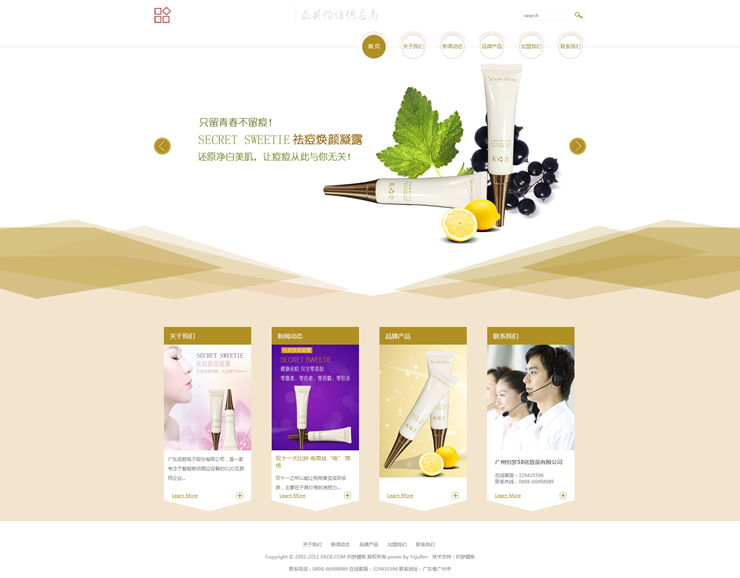 模板編號(hào):     B1548 化妝品公司織夢(mèng)dedecms模板